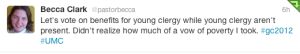 For as long as I have been in full time ministry, I have heard the leaders in my conference talk about the need for young clergy. To their credit, they have actively worked to recruit and support young clergy. At the same time though, I have noticed that with declining attendance and giving, we have also actively been making the compensation end of pastoral ministry less appealing to people pursuing ministry.